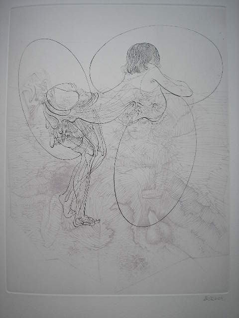 道徳小論(Petit Traite de Morale)1968年、Georges Visat,Paris発行。二色刷り銅版画。「道徳小論」はサドの作品をモチーフにした、ベルメール作品中の最高傑作。