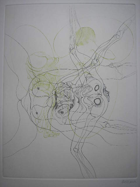 二色刷りのダブルイメージに、暴力的なエロティシズム、技法、主題ともにベルメール作品の頂点に位置します。