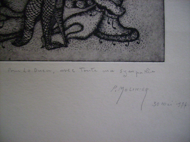 右下マージンにモリニエ直筆のサインと”30 mai 1974 : pour Lo Duca, avec toute ma sympathie”の記載があります。