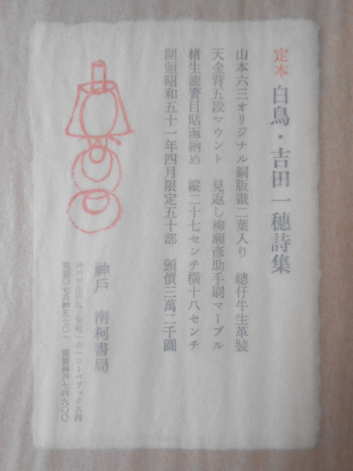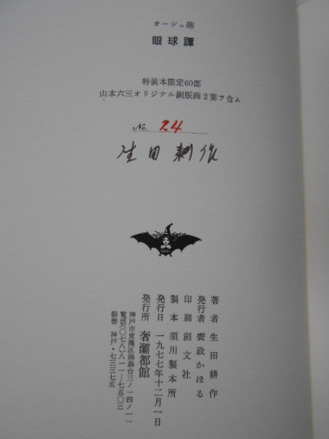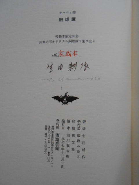 1976年2月10日 南柯書局発行 限定50部の内1番本