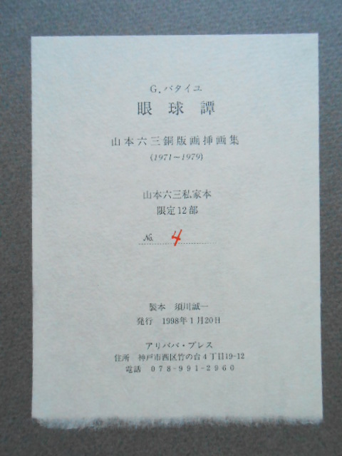 限定特装60部。山本六三の銅版画2作品添付(内1作品に直筆署名)